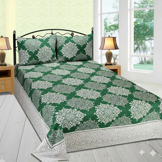 Fresh From Loom Reversible Cotton Single Bed Bedsheet 300 TC Bed Sheets with 1 Pillow Covers Green