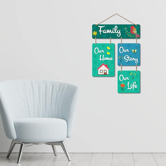 Artvibes Family Quotes Decorative Wall Art Mdf Wooden Wall Hanger for Living Room | Set of 6