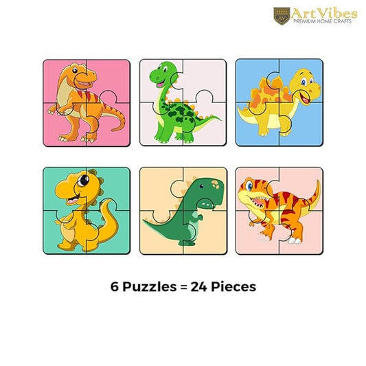 Artvibes Dinosaurs Wooden Jigsaw Puzzle Games for Children & Kids Age 2-5 | Toddler's Wooden 4 Pieces Puzzle | Set of 6