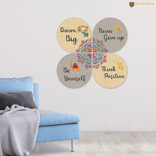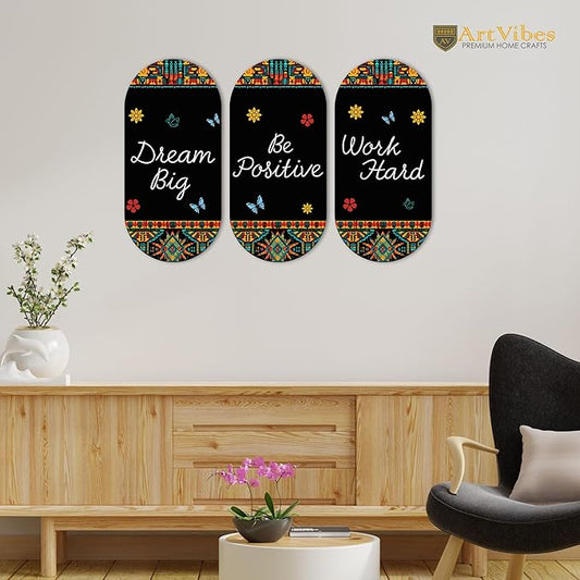 Artvibes Dream Big Positive Quotes Printed Wooden Wall Hanger for Home | Modern Decoration Items | Artworks | Set of 3