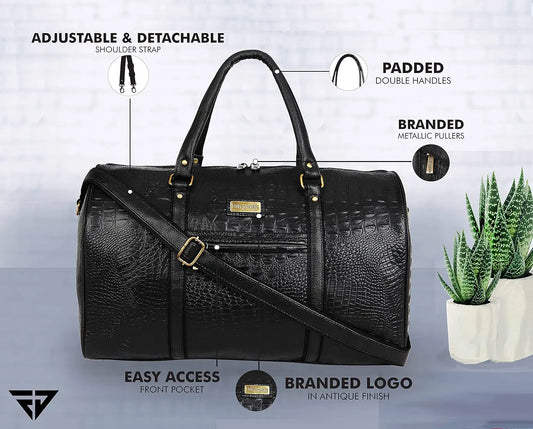 Fur Jaden Black Textured Leatherette Stylish & Spacious Weekender Duffle Bag for Travel for Men and Women