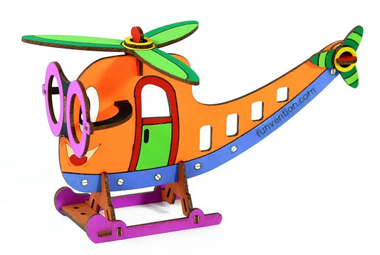 Funvention Helicopter - 3D Coloring Model DIY Desk Organizer Pen Stand STEM Leanring 3D Puzzle Toy