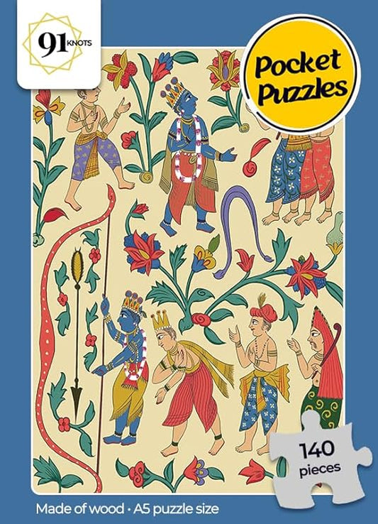 91knots-krishna With Devotees Wooden Jigsaw Puzzle (140 Pieces) for Adults and Kids | Beautiful Indian Artwork Puzzle