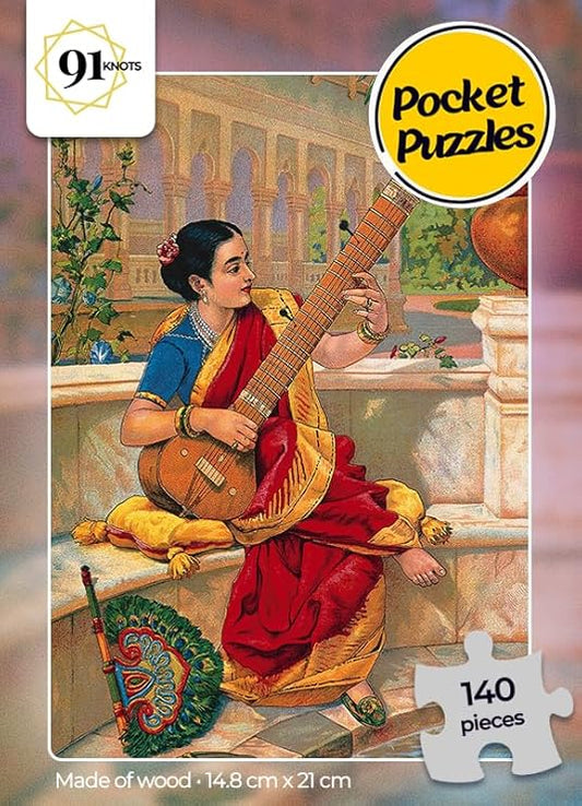 91knots Raja Ravi Varma's - Woman Playing Sitar Wooden Jigsaw Puzzle (140 Pieces) for Adults and Kids Indian Artwork Puzzle