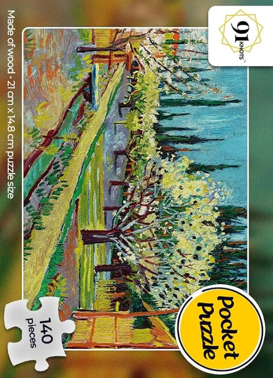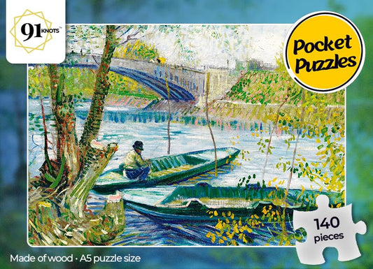 91knots Vincent Van Gogh's-fishing in Spring Wooden Jigsaw Puzzle (140 Pieces) for Adults and Kids | Brain Booster Games & Toys