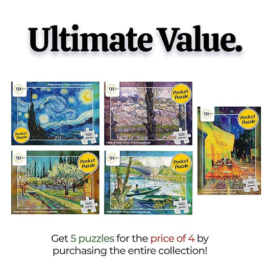 91Knots Vincent Van Gogh Wooden Jigsaw Puzzle (140 Pieces) for Adults and Kids | 5 Box Collection Painting Puzzle | Brain Booster Games & Toys