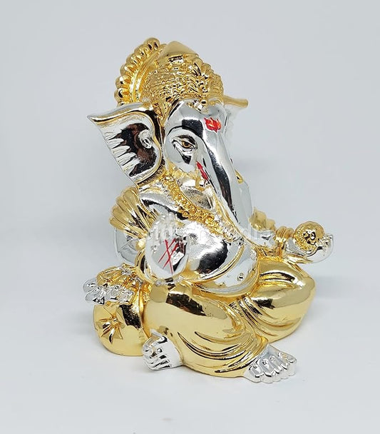 Gold and Silver Plated gaddi Ganesha Idol Ganpati Bappa Murti for Home Decor