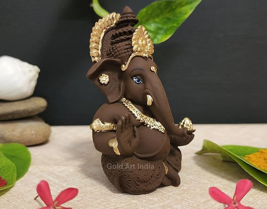 Gold Art India Brown Terracotta Idol for Ganesh Idol for Car Dashboard God for Home Decor