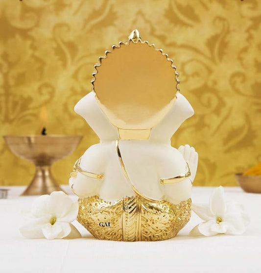 Gold Art India Ceramic Ganesh Idol For Car Dashboard Ganesha Murti For Home Decor