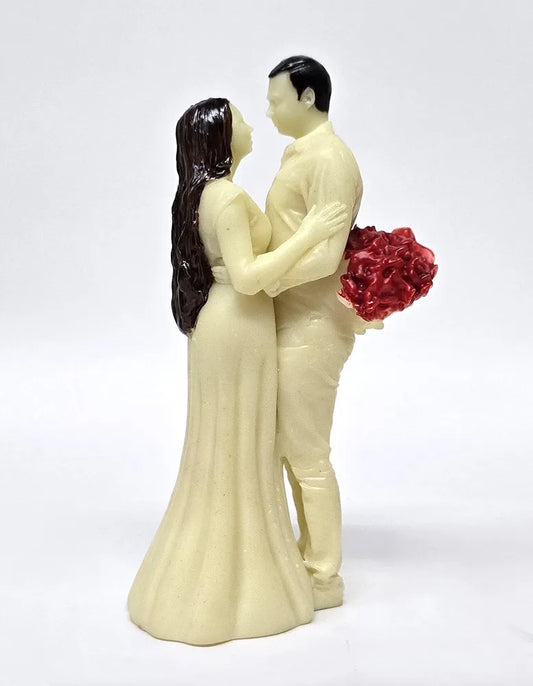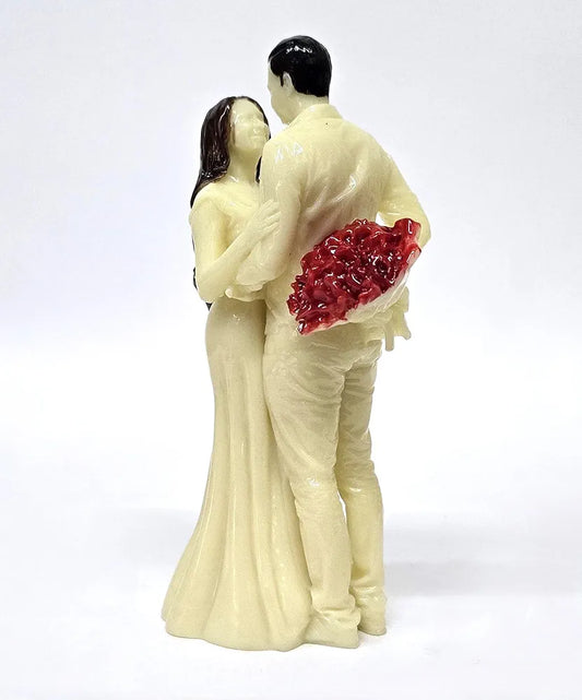 Gold Art India Couple Figurine with Ivory Finish Red Flower Bouquet
