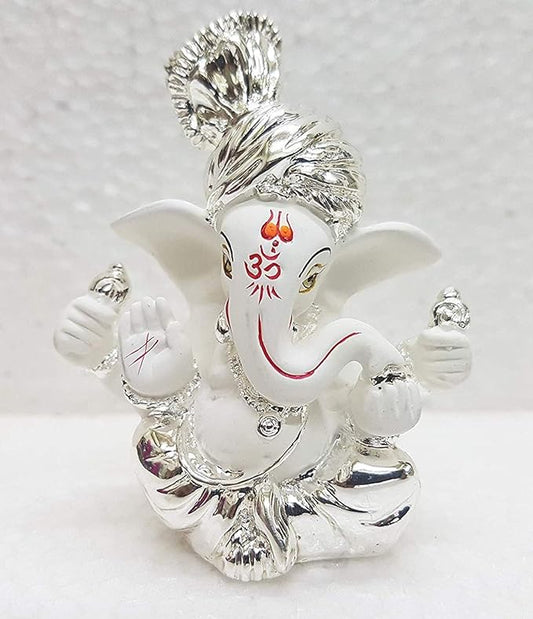 Gold Art India Ceramic Pagdi Ganesh Idol For Car Dashboard Small Ganesha Murti For Home Decor