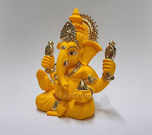 Gold Art India Handcrafted Mango Terracotta Ganesha with Golden Jewelry for Car Dashboard Home Office Decor