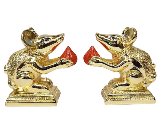 Gold Art India Gold-Plated Mushak Mouse Pair with Modak Orange Terracotta Finish