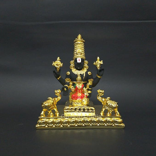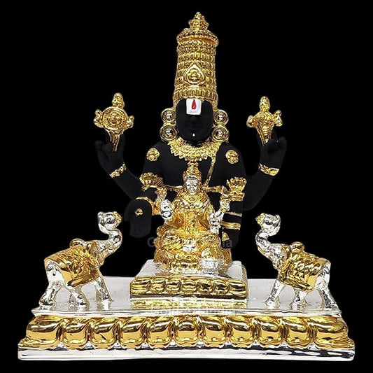 Gold Art India Idol Tirupati Balaji with Gajalakshmi Venkateswara Swamy Statue with Shankha Chakra