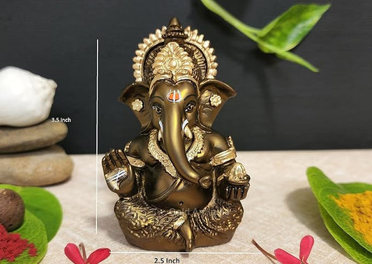 Gold Art India Handcrafted French Brown Mukut Ganesha Idol Perfect for Car Dashboard Home or Office