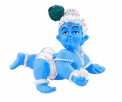 Gold Art India Silver Plated Laddu Gopal Idol with Blue Terracotta Lord Krishna Bal Gopal Office Desk Small