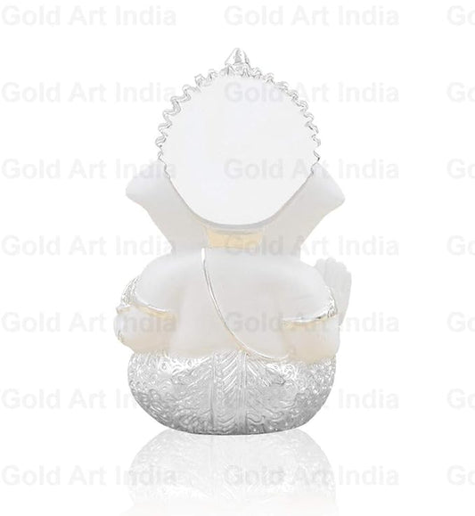 Gold Art India Silver Finish Ganesh Idol For Car Dashboard Ganesha Murti For Home Decor