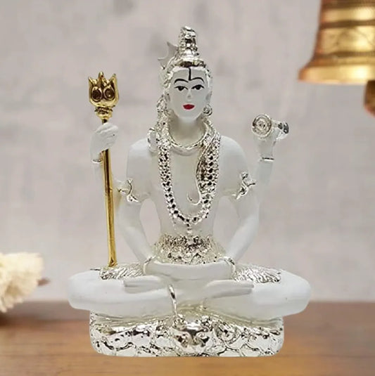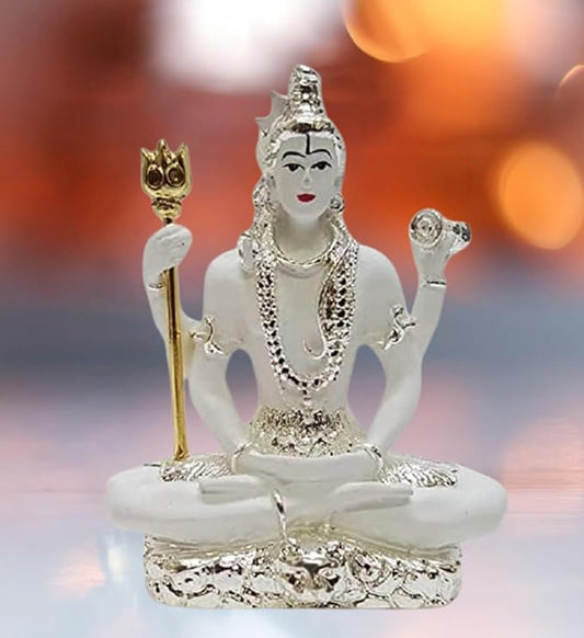 Gold Art India Resin Lord Shiva Idol Bhole Baba Bholenath Hindu God Statue for Pooja Ideal for Gifting Colour White