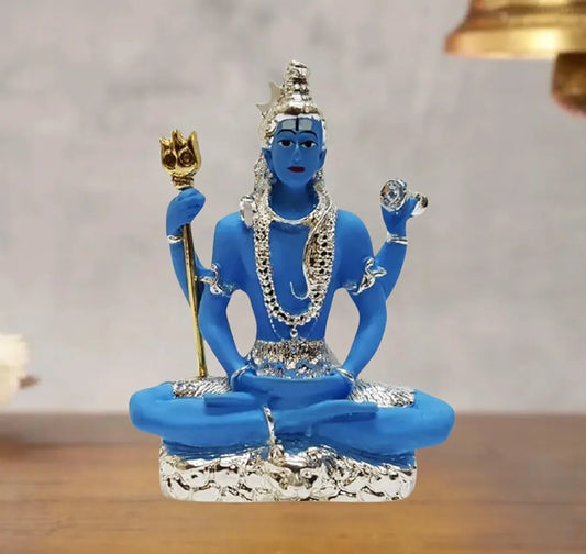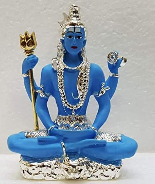 Gold Art India Resin 999 Silver Plated Blue Shiva Idol Blue