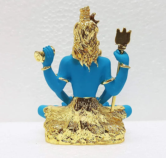 Gold Art India Resin Lord Shiva Idol Bhole Baba Gold blue