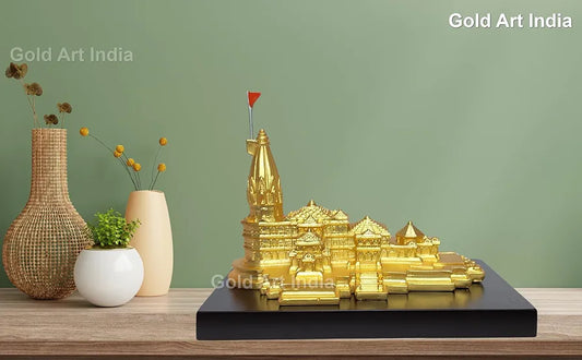 Gold Art India Ram Mandir Ayodhya Gold Plated Matte 24 Karat Minature Large