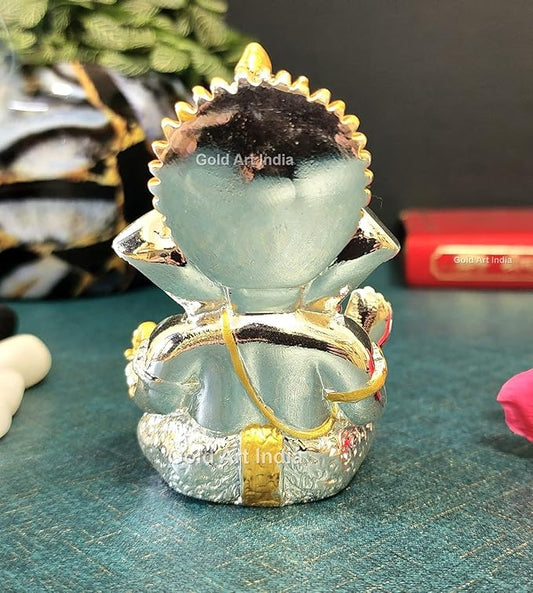 Gold Art India Silver Plated Ganesha Idol for car Dashboard Office & Home