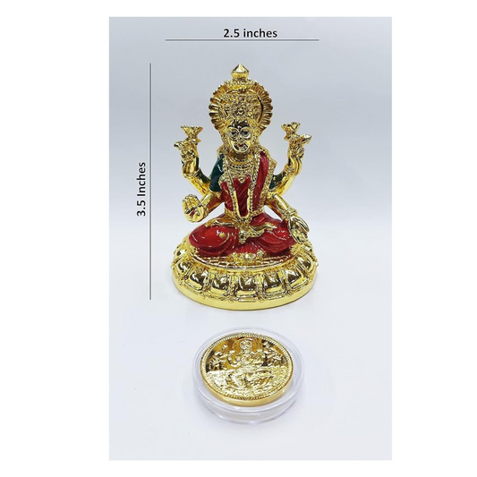 Gold Art India Round Base Laxmi Gold Plated Idol for Mandir Gold Plated Coin Lakshmi Ji Red Enamel Color