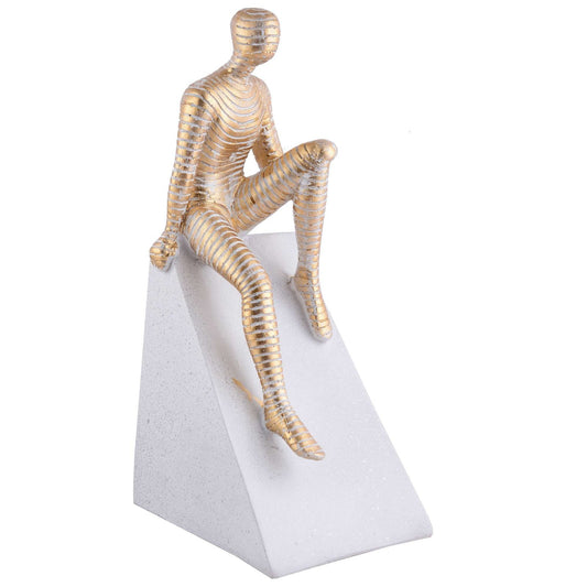 Gold-Ribbed Abstract Mannequin Sculpture Unique Sitting Pose Figurine for Artistic Home Interiors Living Room Centerpieces & Office Aesthetics