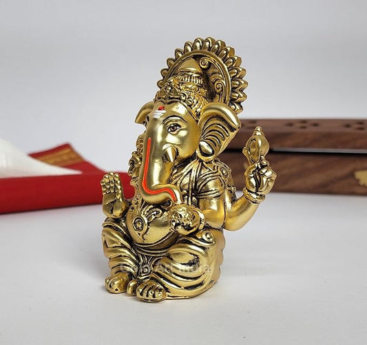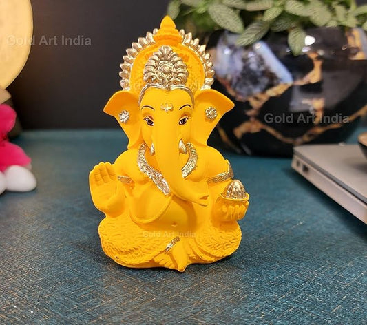 Gold Art India Yellow Mukut Ganesha Good for Divine Home Office Decor Car Dashboard Idol
