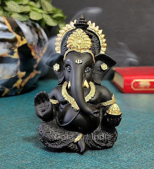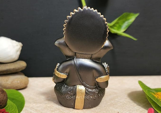 Gold Art India Terracotta Black Gaddi Ganesha for Car Dashboard Home Decor Colour Black