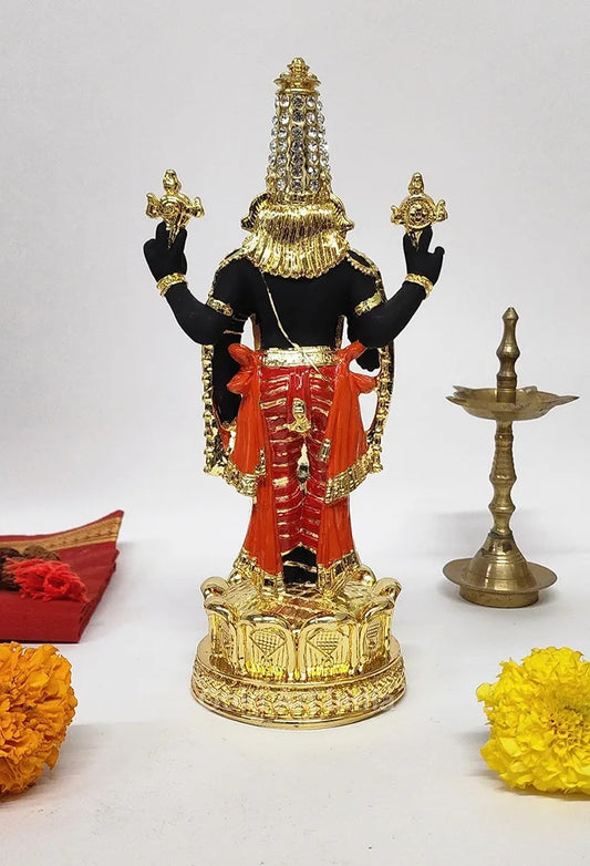 Gold Art India Tirupati Balaji Idol for Mandir Black Body Red Dhoti