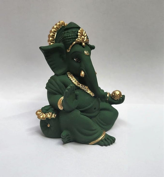 Gold Art India Terracotta Green Gaddi Ganesha for Car Dashboard Home Decor Gadditerracotta green