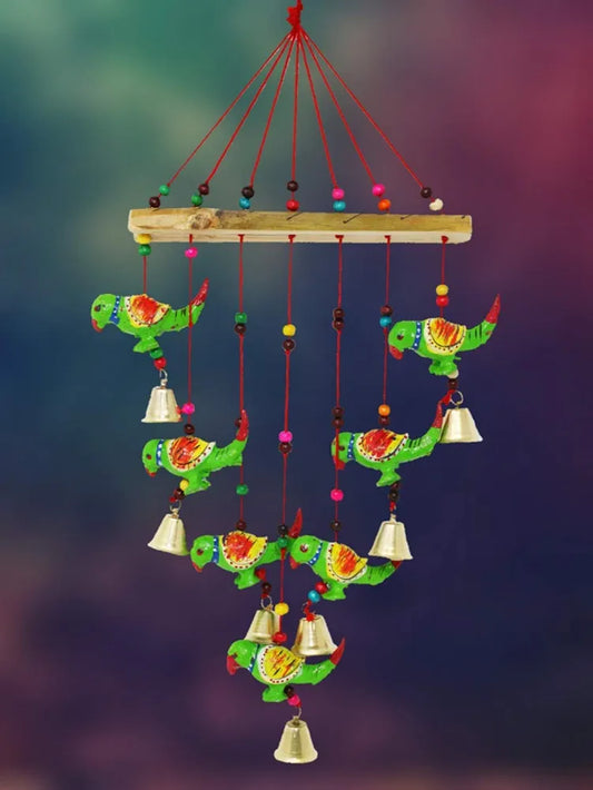 Handcrafted Recycled Material Rajasthani Wind Chime Parrots