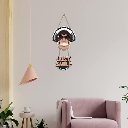 Artvibes Monkey Smile Printed Wooden Wall Hanging Ornaments With Quotes for Home Decor