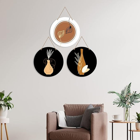 Artvibes Modern Abstract Art Wooden Wall Hanging for Home Decor | Set of 3