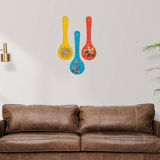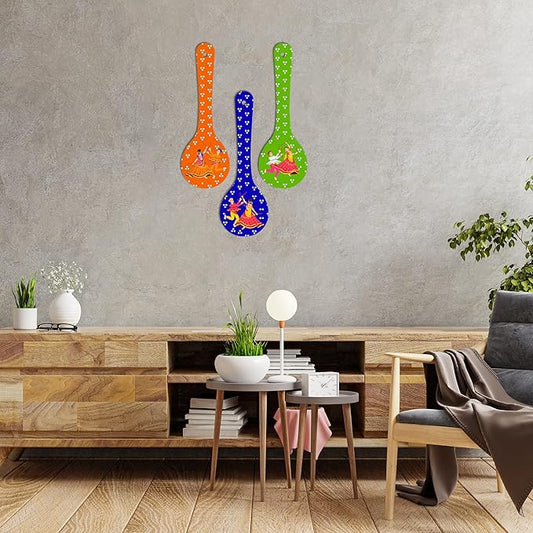Artvibes Madhubani Art Wooden Wall Hanger for Home | Set of 3 | Multi 9