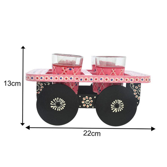 HandPainted Alluminium Pink Tea Kettle with Four Glasses and Wooden Tray For Home Décor , Tea Party , Serving