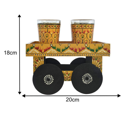 HandPainted Alluminium Tea Kettle with Four Glasses and Wooden Tray For Home Décor , Tea Party , Serving