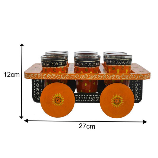 HandPainted Alluminium Tea Kettle with 6 Glasses and Wooden Tray For Home Décor , Tea Party , Serving