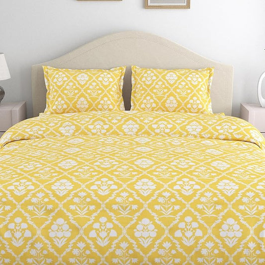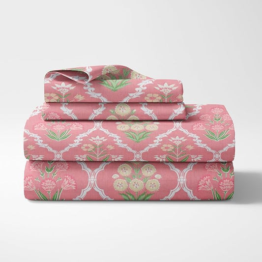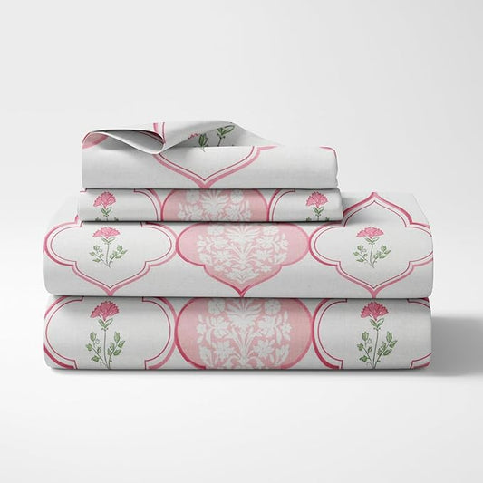 Haus & kinder Cotton Queen Size Bedsheet for Double Bed (90 X 100 Inches) with 2 Pillow Covers | 186 TC |Pink City Palette