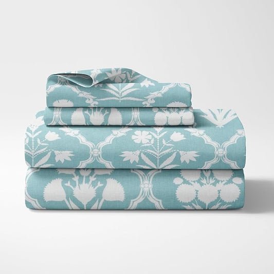 Haus & kinder Cotton Queen Size Bedsheet for Double Bed (90 X 100 Inches) with 2 Pillow Covers | 186 TC | Blue White Floral