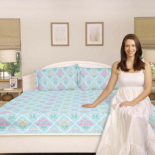 Haus & Kinder Cotton Queen Size Bedsheet For Double Bed (90 X 100 Inches) With 2 Pillow Covers | 186 Tc |ecos Of Pink City
