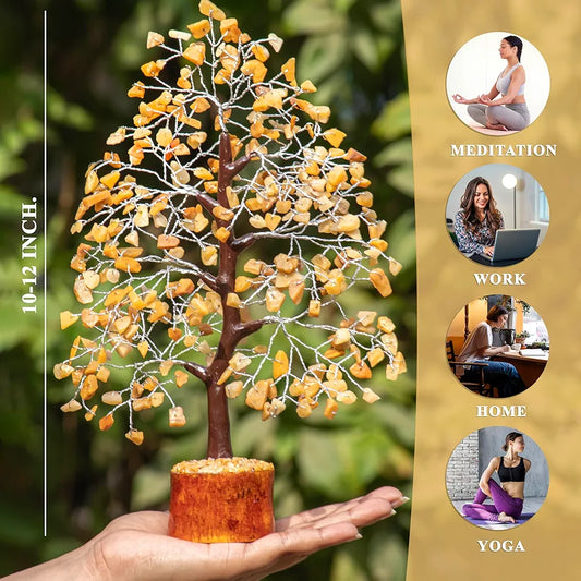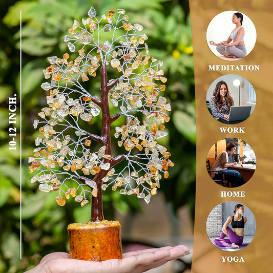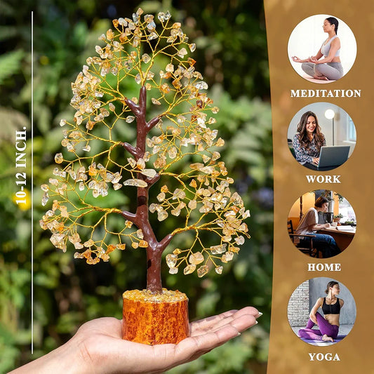 HindCraft Citrine Gemstone Crystal Tree Golden Wire 10-12 inch
