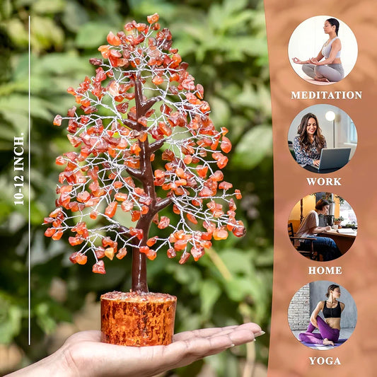HindCraft Carnelian Chakra Crystal Tree Good Luck Golden Wire 10-12 inch