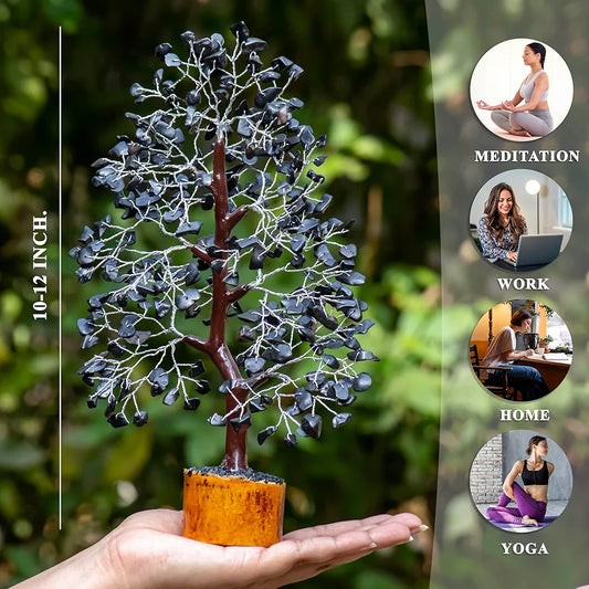 Hindcraft Black Tourmaline Crystal Tree Silver Wire 10-12 inch