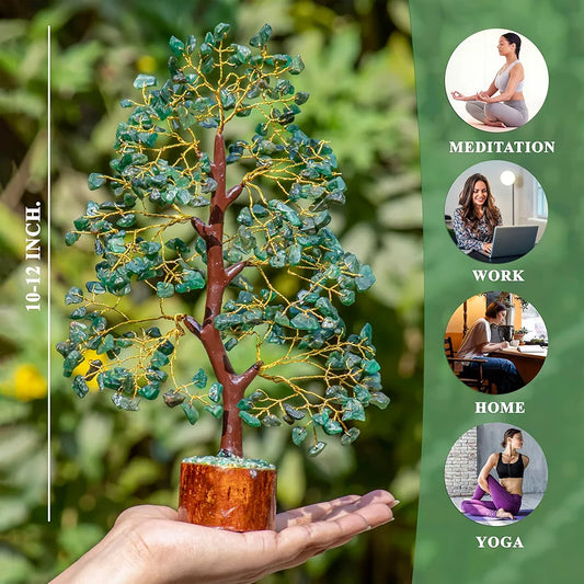 HindCraft Green Aventurine Crystal Tree Golden Wire 10-12 inch