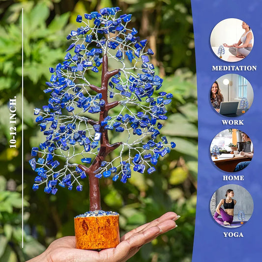 HindCraft Lapis Lazuli Crystal Tree Golden Wire 10-12 inch