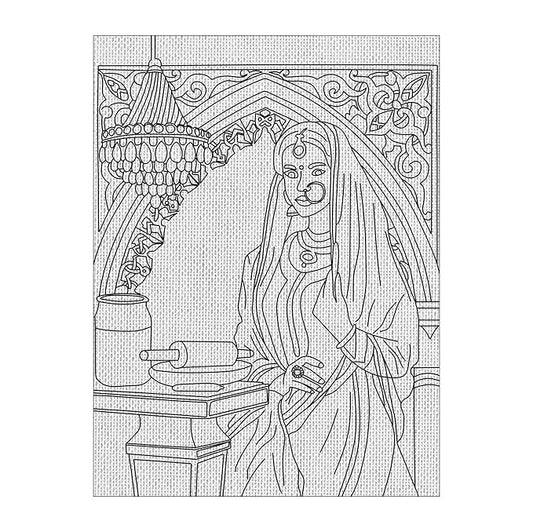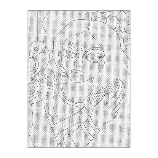 Hobby India Self Painting Beautiful Lady Canvas - Gond Art | Pre-designed Canvas Board
