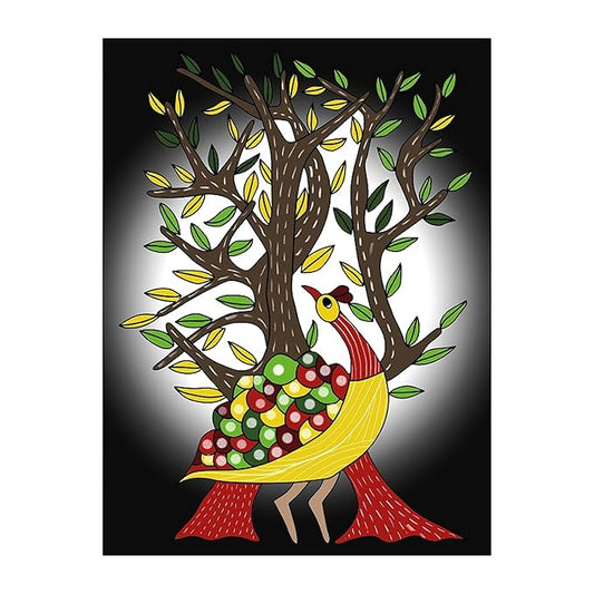 Hobby India Self Paint Beautiful Peacock Canvas - Gond Art | Pre-designed Canvas Board