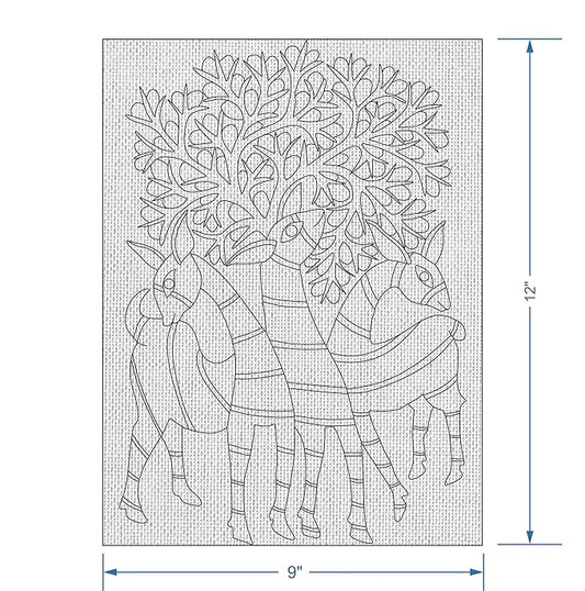 Hobby India Self Paint Beautiful Dear Canvas - Gond Art | Pre-designed Canvas Board
